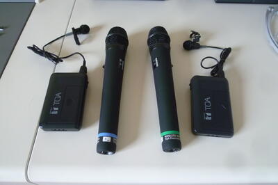 機材もすっきりしていて、ワイアレスマイクは4本使えます。ということは、各学級からの中継やインタビューもできます。