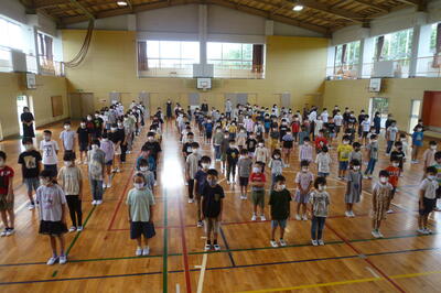 校長先生からは、「1学期はみんなが一つになって頑張ったことが素晴らしかった」というお話や、「夏休みには健康安全に気をつけて自分を大切にしてほしい」「自国開催にオリンピックを楽しんでほしい」というお話がありました。