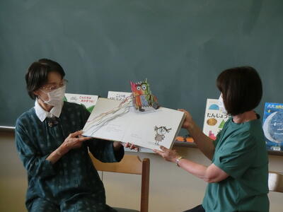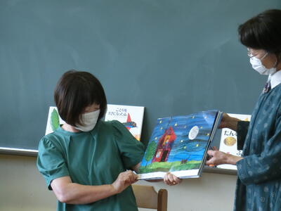 図書ボランティアのお二人のやさしい語り口に、子どもたちは引き込まれていました。