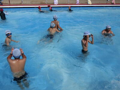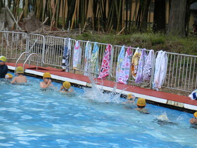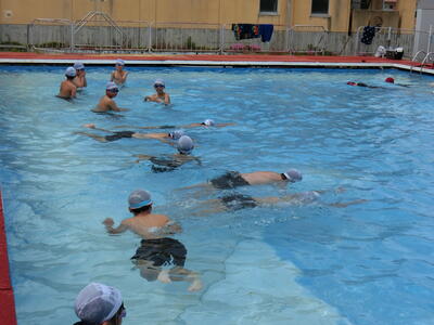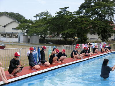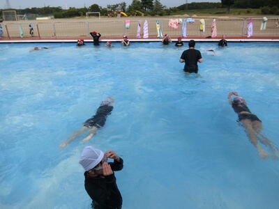 プール開きをしたので、午後から早速、5・6年生がプールに入りました。