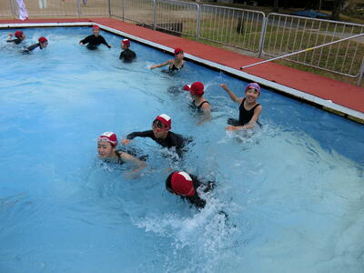みんな同じ方向に歩いて、流れるプールを作るよ。