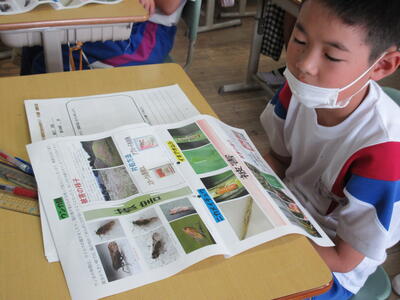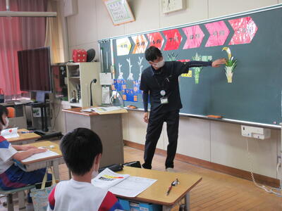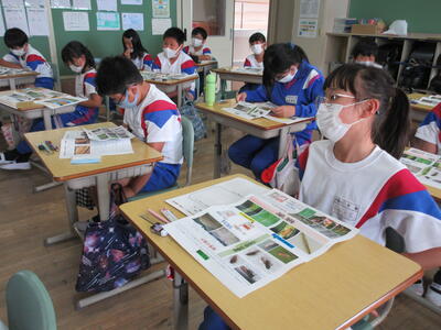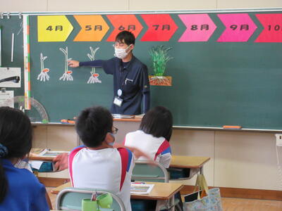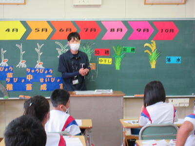 5年生が育てている「バケツ稲」のこれからの育て方について、JAの方に来ていただいて出前授業をしていただきました。