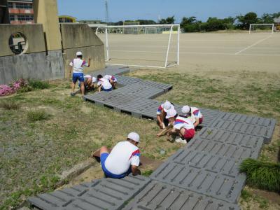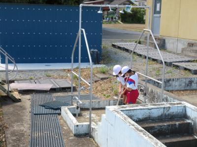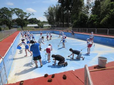 1日に5年生6年生がプール掃除をしました。