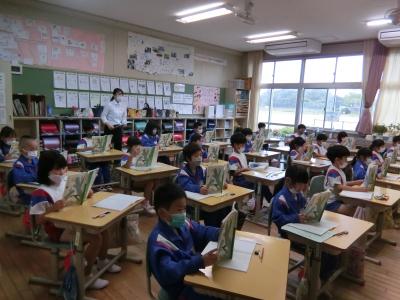 国語の授業です。名作「スイミー」を取り上げます。手に持っているのは「スイミー」です。
