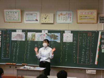 教育実習の佐藤里帆先生が2年生の学級で授業を行いました。