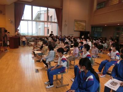 多目的ホールに4年生以上が集まりました。