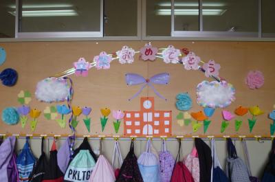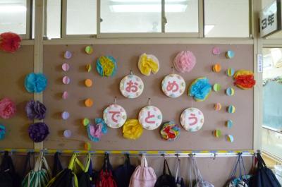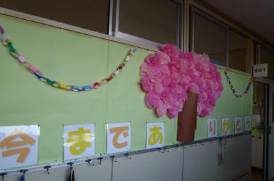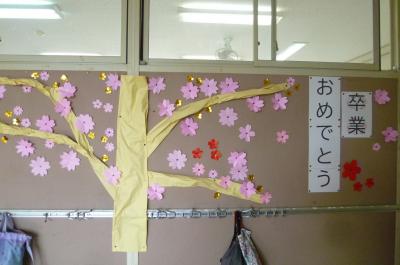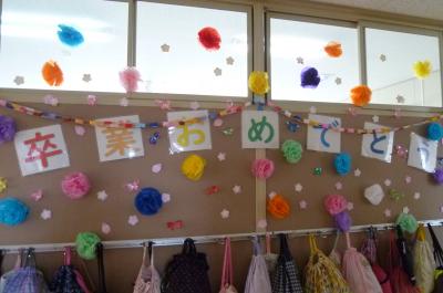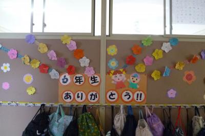 6年生の教室の廊下にも6年生の装飾がありました。いよいよ明日は卒業です。