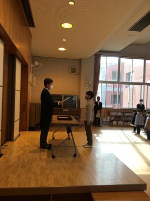 みんなで歌うわけにはいかないので、校歌はCDを聴くだけになりました。ちょっと寂しいですね。
