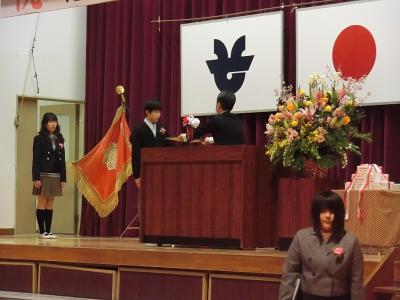 修了生を代表して遠藤結衣さんが進級祝い品を受け取りました。