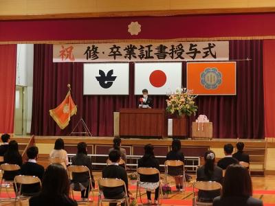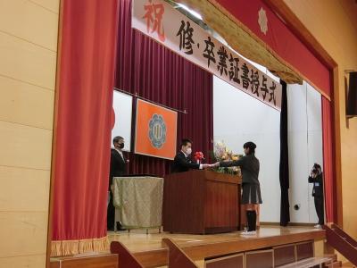 在校生を代表して、菅野恵瑚さんが修了証書を受け取りました。