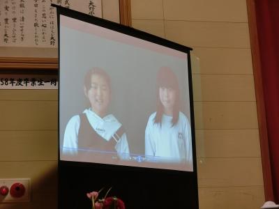 卒業式に出られない在校生からはビデオメッセージがありました。BGMは荒先生のピアノ生演奏でした。