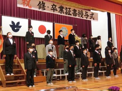 卒業式に先立って、1~5年生による終了証書授与式が行われました。