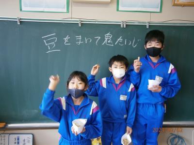 124年ぶりの2月2日の節分。大野小学校でも豆まきが行われました。