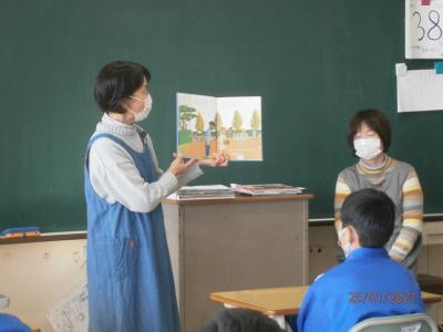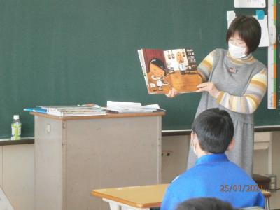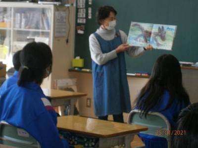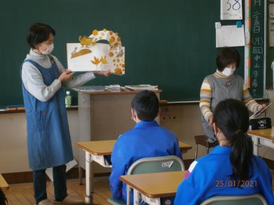 6年生でも、図書ボランティアの方に来ていただいて、読み聞かせをしていただきました。