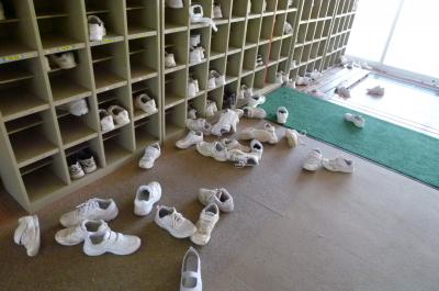 下駄箱や教室はこんな状態でした。