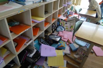 さて、地震後の学校はこんな様子でした。