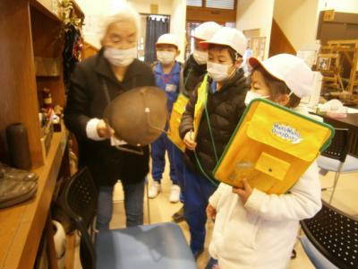 3年生は社会科「市の様子と人々のくらしのうつりかわり」で昔の人の生活の様子を学習します。その一環で、「郷土蔵」を見学させていただき、昔の道具などを見せていただきました。