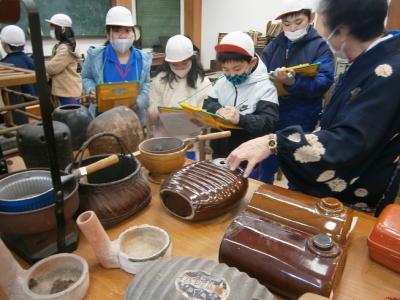 中には、見ただけではどんな働きがあるのかわからない道具もあって面白かったです。今なら電気で動かすものがほとんどですが、昔はほぼ人力でした。効率よく作業ができるように道具を工夫していたんですね。自分たちが普段使っている道具も、昔の人たちの知恵と工夫で生まれてきたものなんですね。説明をしてくださったみなさん、本当にありがとうございました。