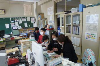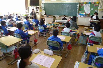 冬休みの生活や学習について、読み合わせをしました。石上地区の様子