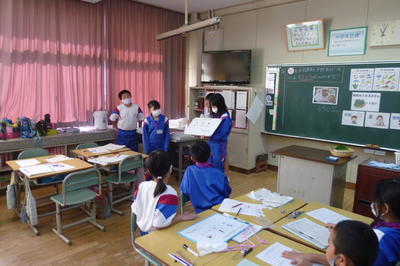 4年生は、中村一中の栄養教諭の丹先生を講師に招いて、担任の美紀子先生と「生活習慣を予防する食生活」について食育教室を行いました。