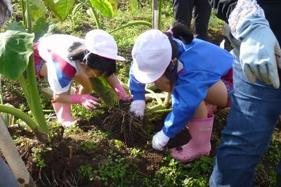 大きないもの塊もありました。「とった芋はお持ち帰りしていいですよ。」と言っていただき、持ってきた袋いっぱいの相馬土垂をおうちへのお土産にいただきました。各ご家庭でおいしくいただいてください。