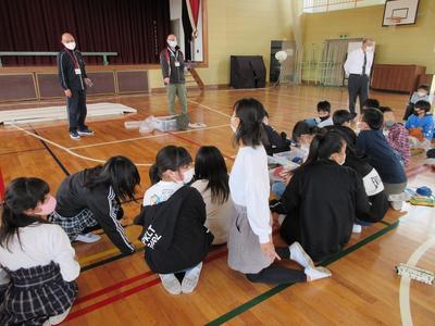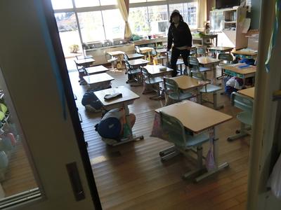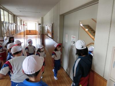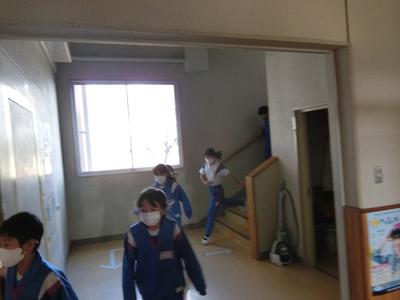 今日は、自信を想定した避難訓練を行いました。休み時間に地震が発生、自分たちで放送を聞いて、安全に避難できるか訓練しました。