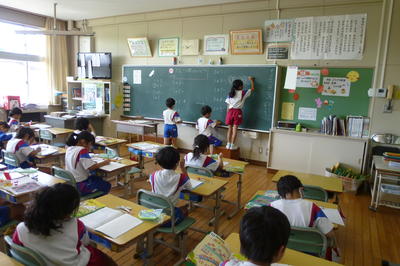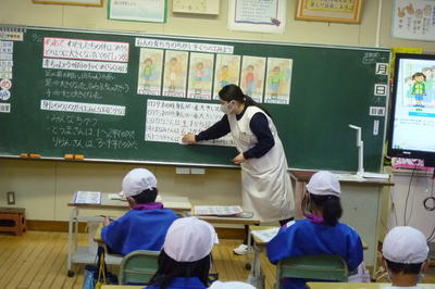 4年生は、担任の佐藤先生と養護教諭の教育実習生の坂内先生との保健の授業がありました。
