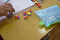 串にささった3つの団子の数を、2串、3串と順に数えていきました。実際に図を描いたり、おはじきを重ねて考えたりしていました。