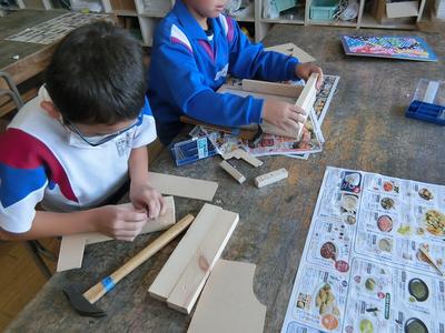 のこぎりや金づち、電動糸鋸など、はじめは慣れないのでうまく使えませんでしたが、だんだん上手にできるようになってきました。どんな作品ができるか、楽しみですね。