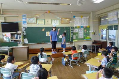 1年生は道徳で「はじのうえのオオカミ」の勉強をしました。狭い橋の上で出会った自分より小さいウサギやキツネに「もどれ、もどれ」といばっています。しかしあることをきっかけにオオカミはウサギたちにやさしくしてあげるようになります。