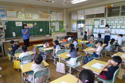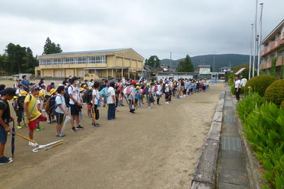 担当の先生の話を聞いて、当番の6年生に続いて「さようなら」のあいさつをして、登校班ごとに順番に下校します。