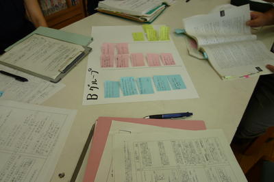 6年生が下校した後、先生方が3つのグループに分かれて、今日の授業について研究協議をしました。