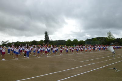 2020年9月16日 13時51分今日は、最初で最後の幼稚園と小学校の全体練習です。入場行進はしませんが整列の間隔と退場の仕方、運動会の歌の姿勢などの確認と練習を行いました。当日の天気予報は良くなく心配ですが、雨が降らないことを祈ります。