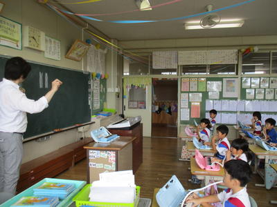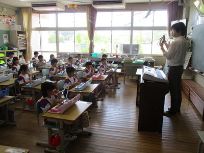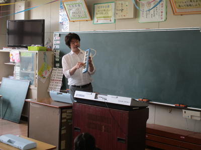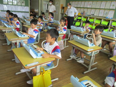 ヤマハ音楽講師の山本先生に、1年生が鍵盤ハーモニカを習いました。