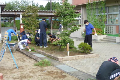 トラックとフィールドの除草をしていただき、大変きれいになりました。作業が終わった方には花壇の除草もしていただきました。