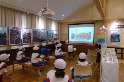 相馬こどもドームに場所を変えて、講師の木幡さんから震災の時のお話を聞きました。