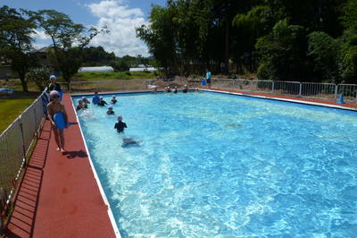 子どもたちはいつものように集団登校しました。今日もプール以外は室内での活動が中心です。