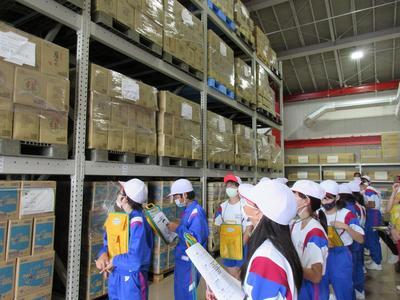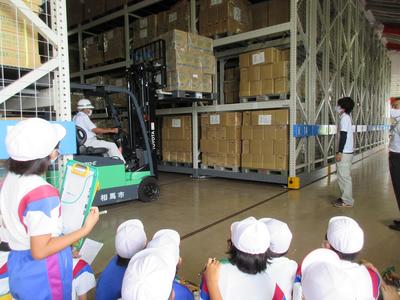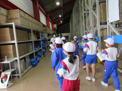 5年生はバスを使って、防災備蓄倉庫の見学に行きました。