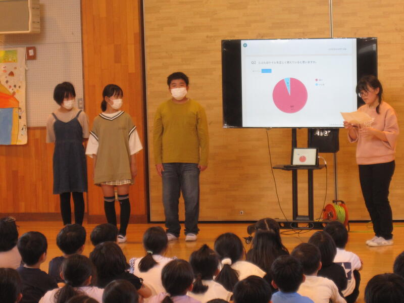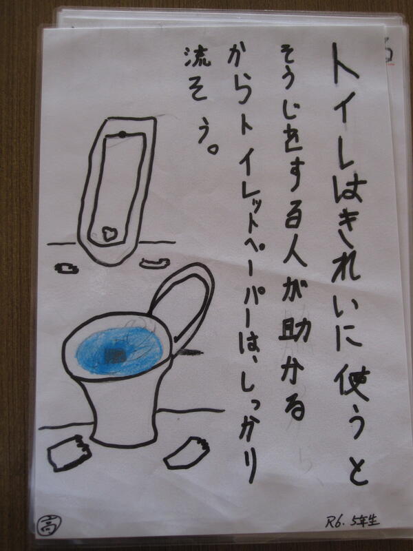 みなさん、今回の5年生からの提案を「自分のトイレの使い方が正しいか、間違っているか」を見直すきっかけにしてもらい、みんなが、正しく、気持ちよくトイレを使っていければと思います。