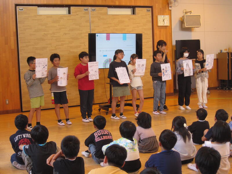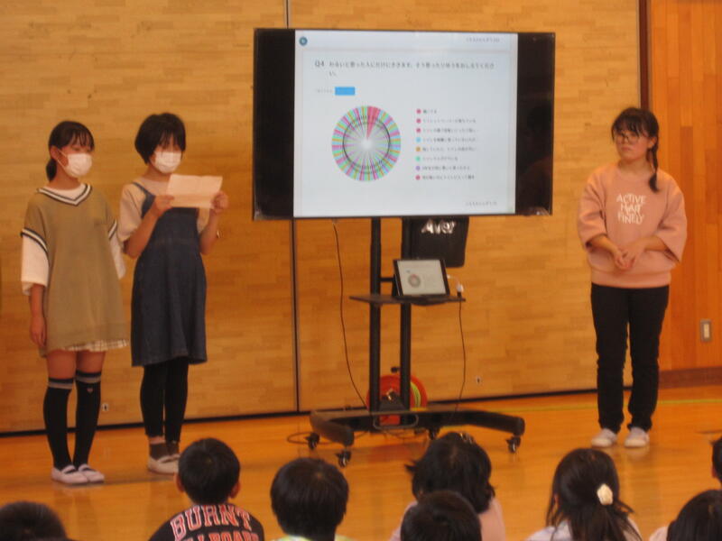 5年生の子どもたち自らが見つけた学校生活をより良くするための問題を見つけ、解決しようとアンケートをとり、資料を作成し、発表する姿は大変すばらしい姿です。