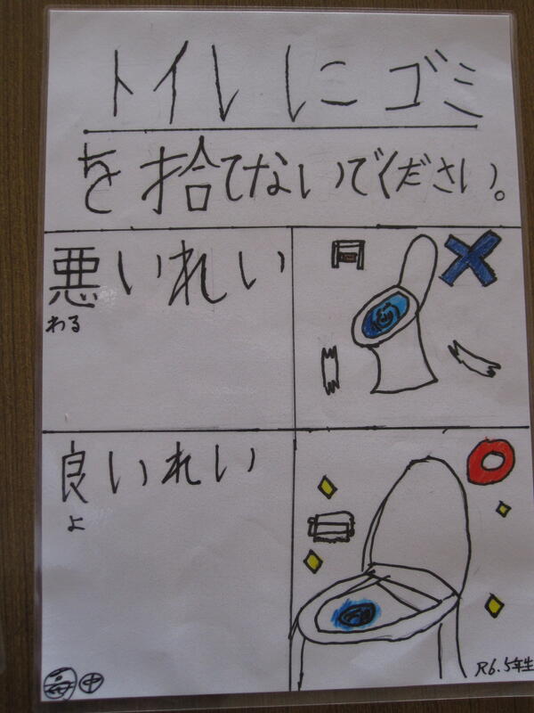 今後は、みんなが、正しく、気持ちよくトイレを使うような呼びかけのためのポスターを掲示する予定です。