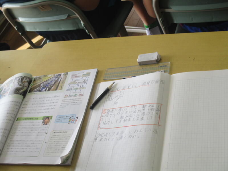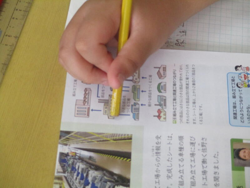 先日のトヨタ 自動車東日本・宮城・大衡工場の見学学習をもとに学習を進めている5年生。