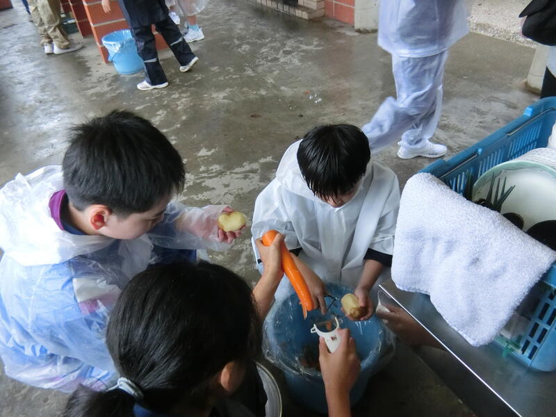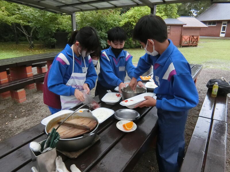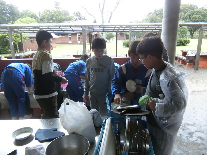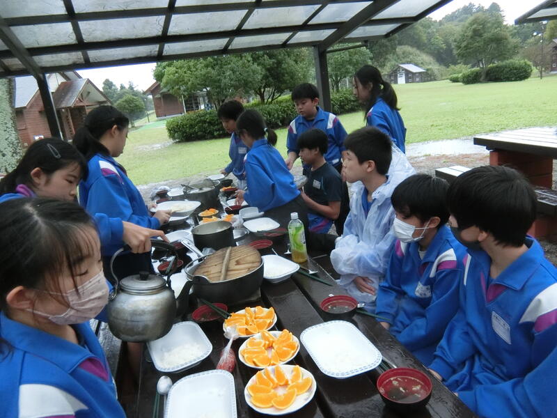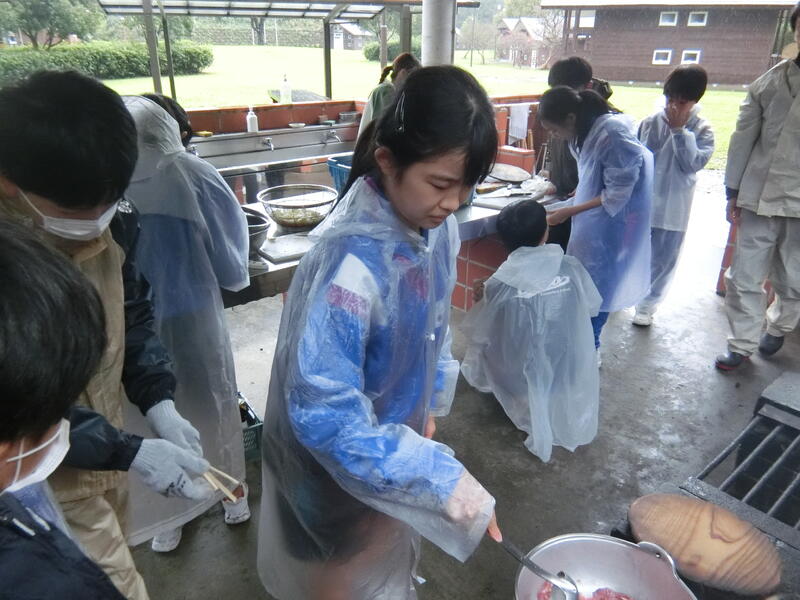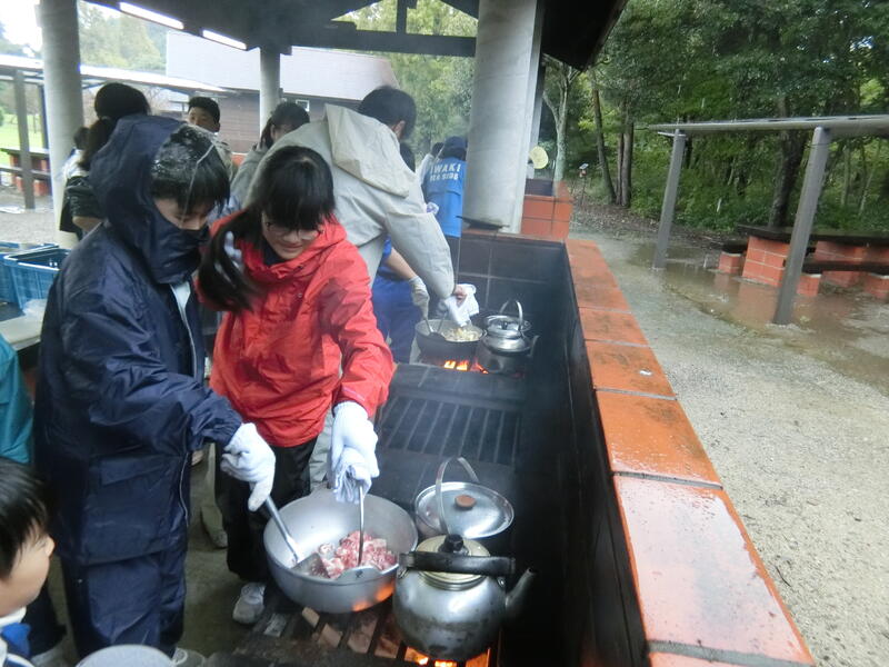2日目もあいにくの雨模様でしたが、雨の中の野外炊飯。貴重な体験をしました。