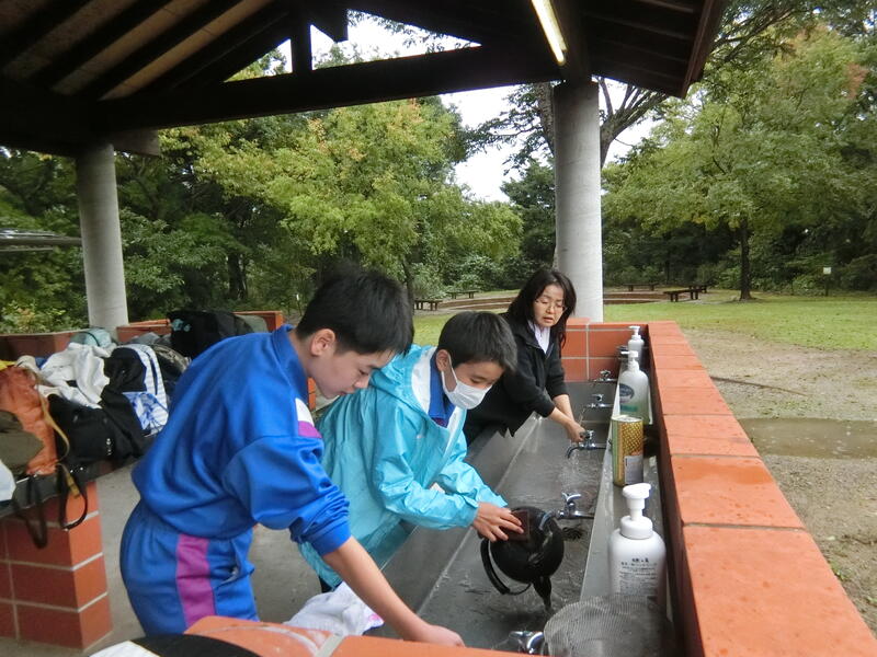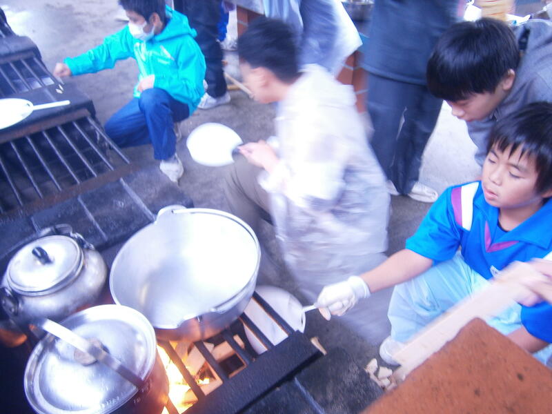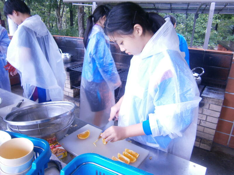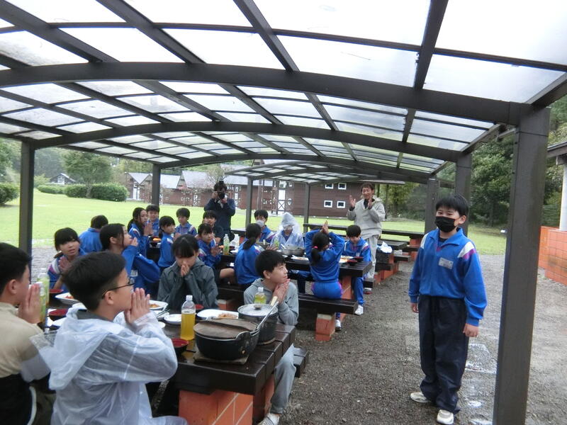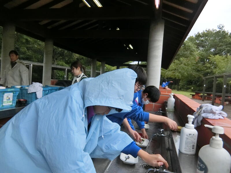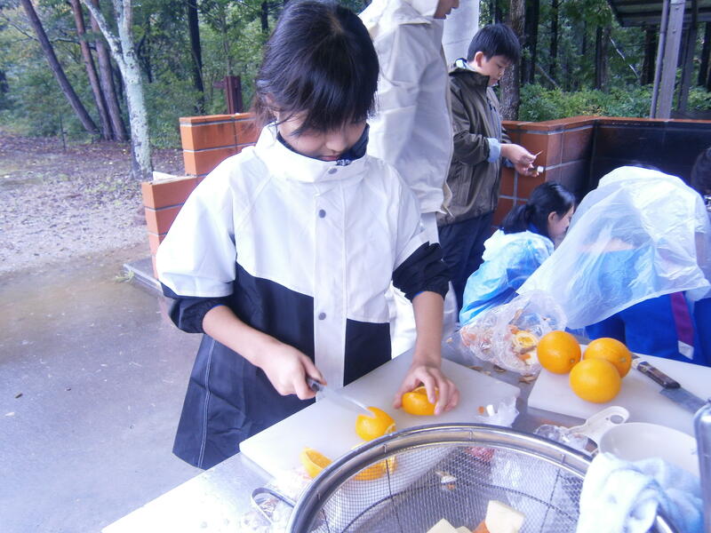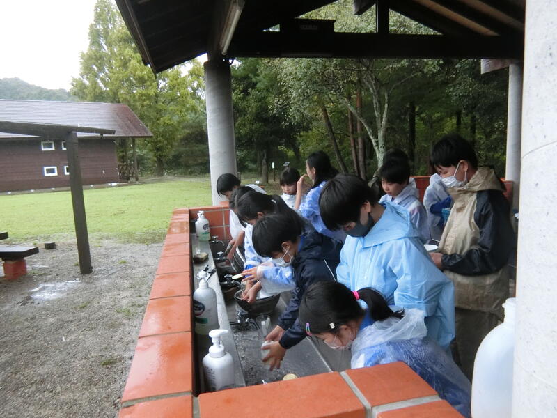 2日目もあいにくの雨模様でしたが、雨の中の野外炊飯。貴重な体験をしました。