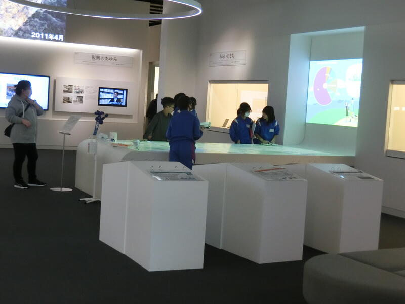 地震、津波、原発事故の被害を伝える実物資料や証言映像に加え、タッチパネル、模型などもあり、未曽有の複合災害に理解を深めることができました。