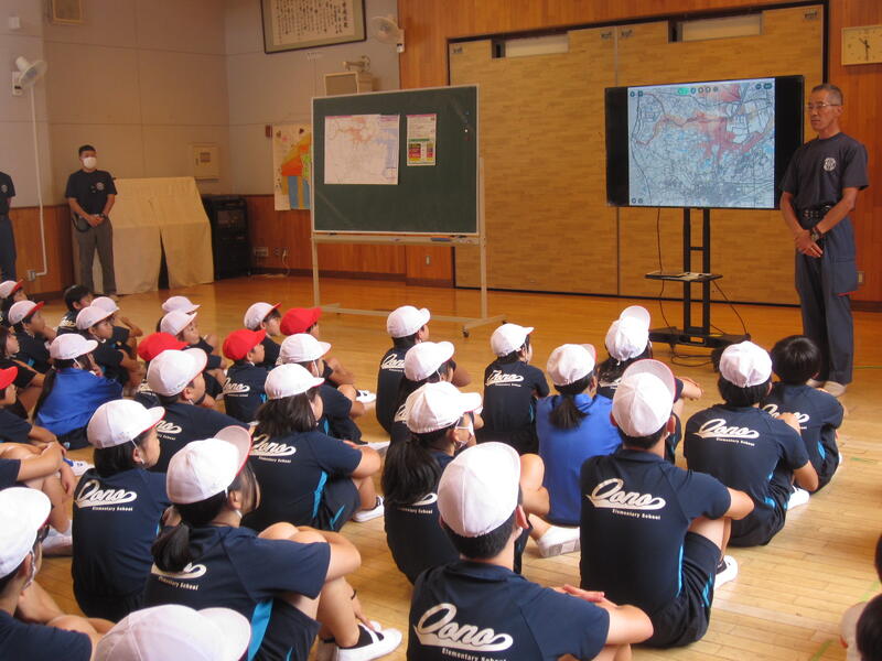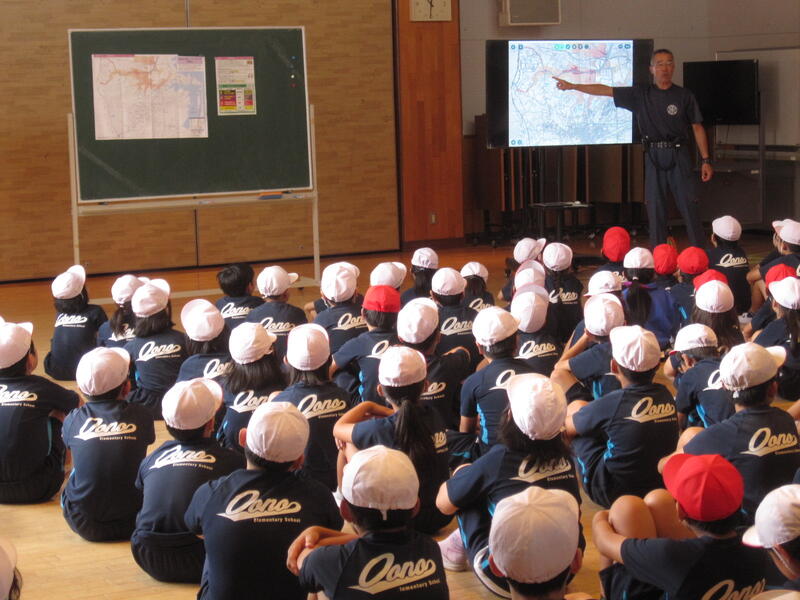 また、本校は緊急避難所、指定避難所に指定されていること、大野学区内の緊急避難所のこと、自宅における垂直避難の留意点なども教えていただきました。