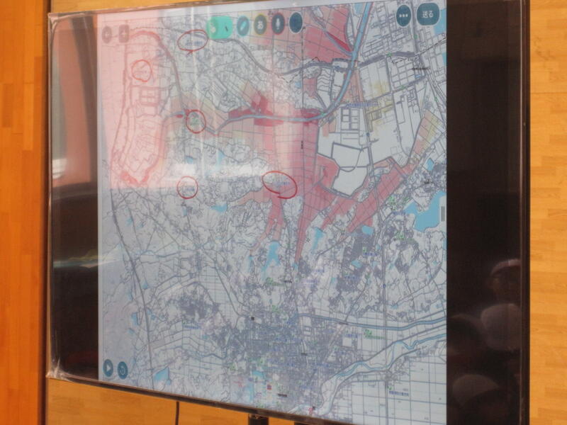 ご講話では、タブレットを使って、ハザードマップの見方や避難の仕方のお話をいただきました。