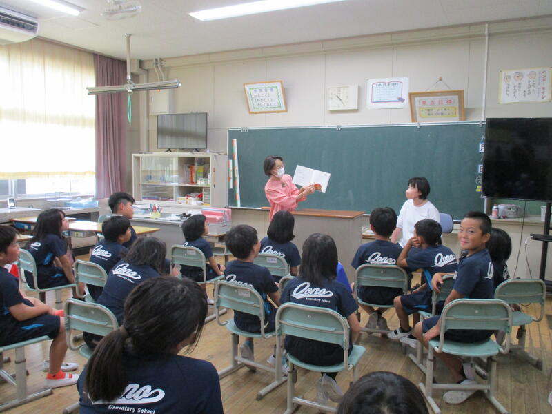 読書ボランティアの布施様、西村様においでいただき、子どもたちが本に興味が湧くような読み聞かせをしていただきました。
