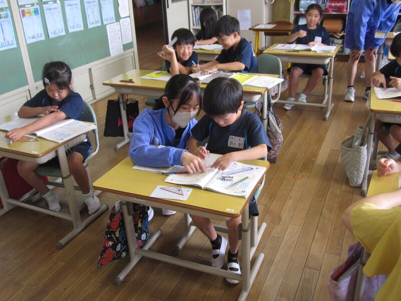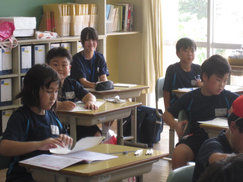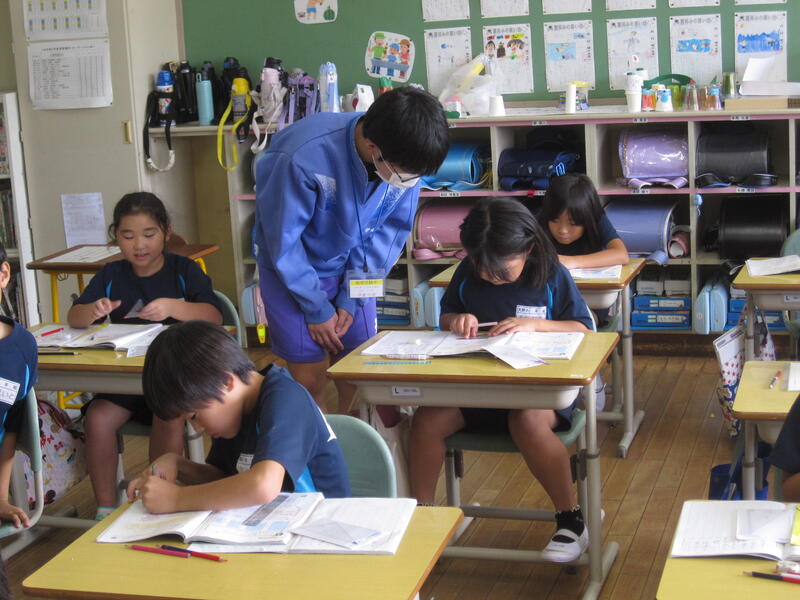 中学生たちは、「教師の視点で」授業を見学したり、児童の隣に行ってアドバイスしたりしながら体験学習に取り組んでいました。