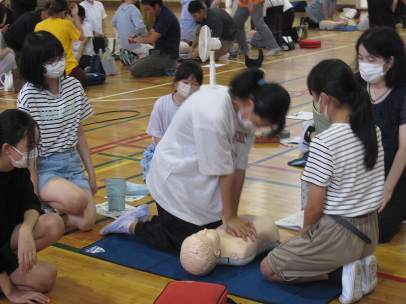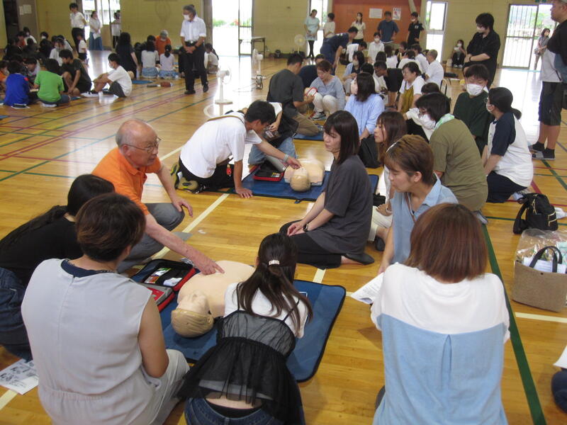 たくさんの人形やAEDを準備していただけたおかげで、多くの皆さんが実際に心肺蘇生法を体験しながら学習することができました。